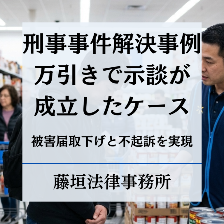 万引き事件では、後日発覚した場合でも捜査の対象となり、繰り返している事情があると処分が重くなることもあります。特に大規模店舗では示談に応じない運用が取られること...