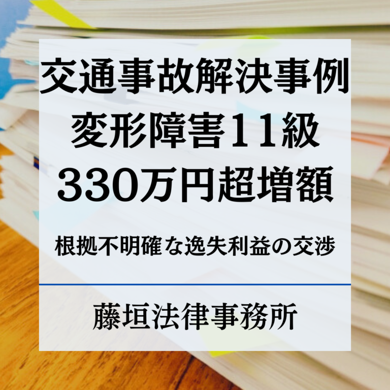 【交通事故解決事例】脊柱変形障害で11級が認定されたものの,逸失利益の有無が問題となった交渉に対処し,330万円超の増額を獲得した事例
