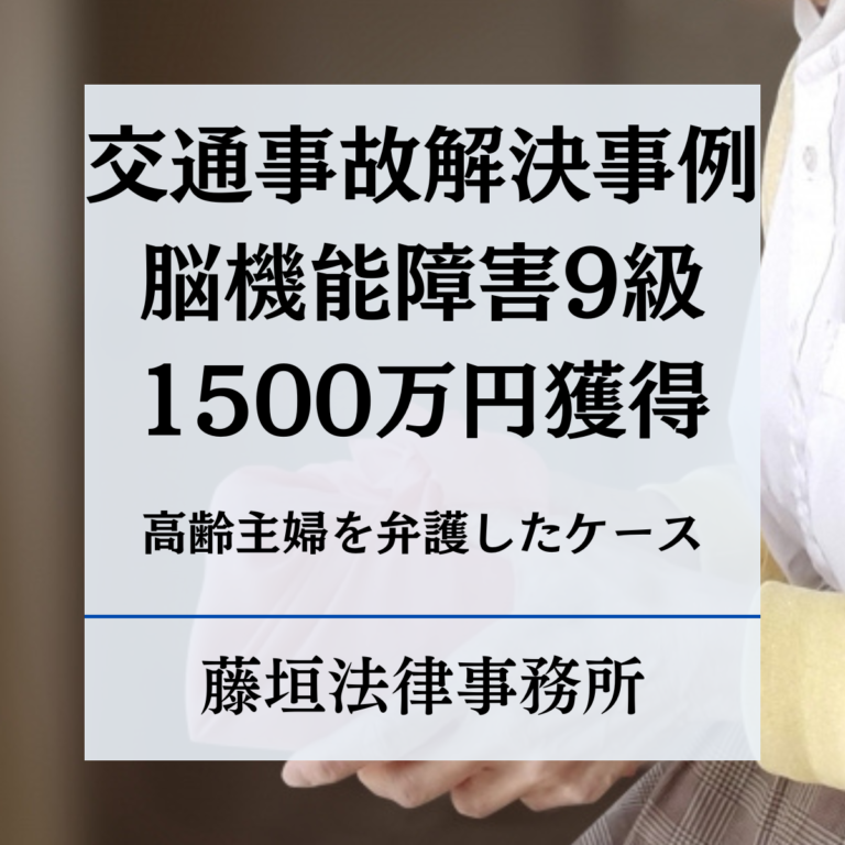 【交通事故解決事例】高次脳機能障害9級の認定と賠償額1500万円を獲得。高齢主婦の損害における丁寧な交渉が奏功したケース