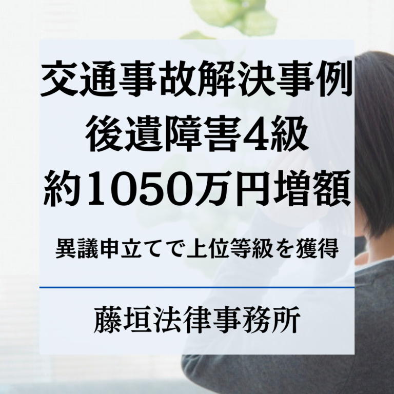 【交通事故解決事例】異議申立ての結果,後遺障害5級→4級と上位等級の認定が獲得でき,約1,050万円の増額に至った事例