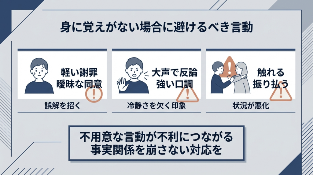 身に覚えがない場合に避けるべき言動