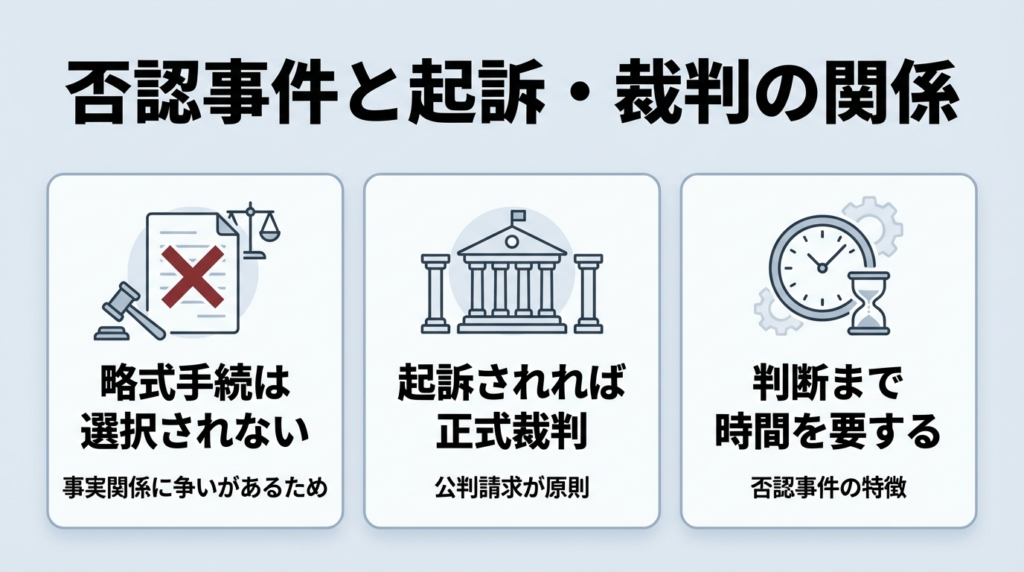 否認事件と起訴・裁判の関係