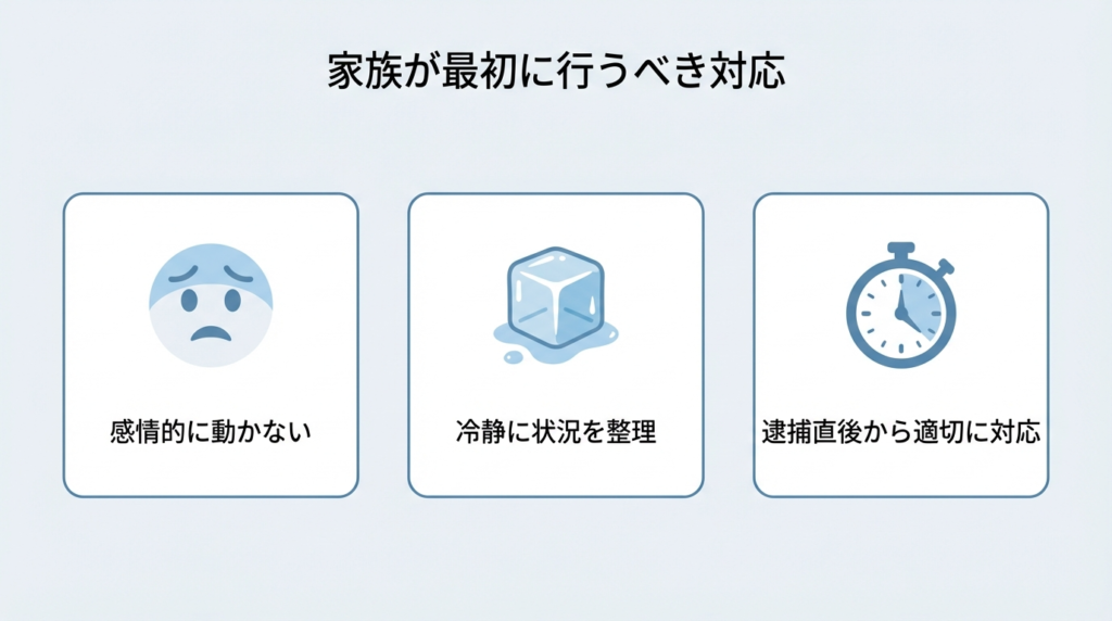 そのため、家族としては、事実関係や手続の見通しを整理しながら、弁護士の助言を踏まえて冷静に対応することが、本人にとっても家族にとっても重要になります。状況を正しく理解することが、次の判断につながります。