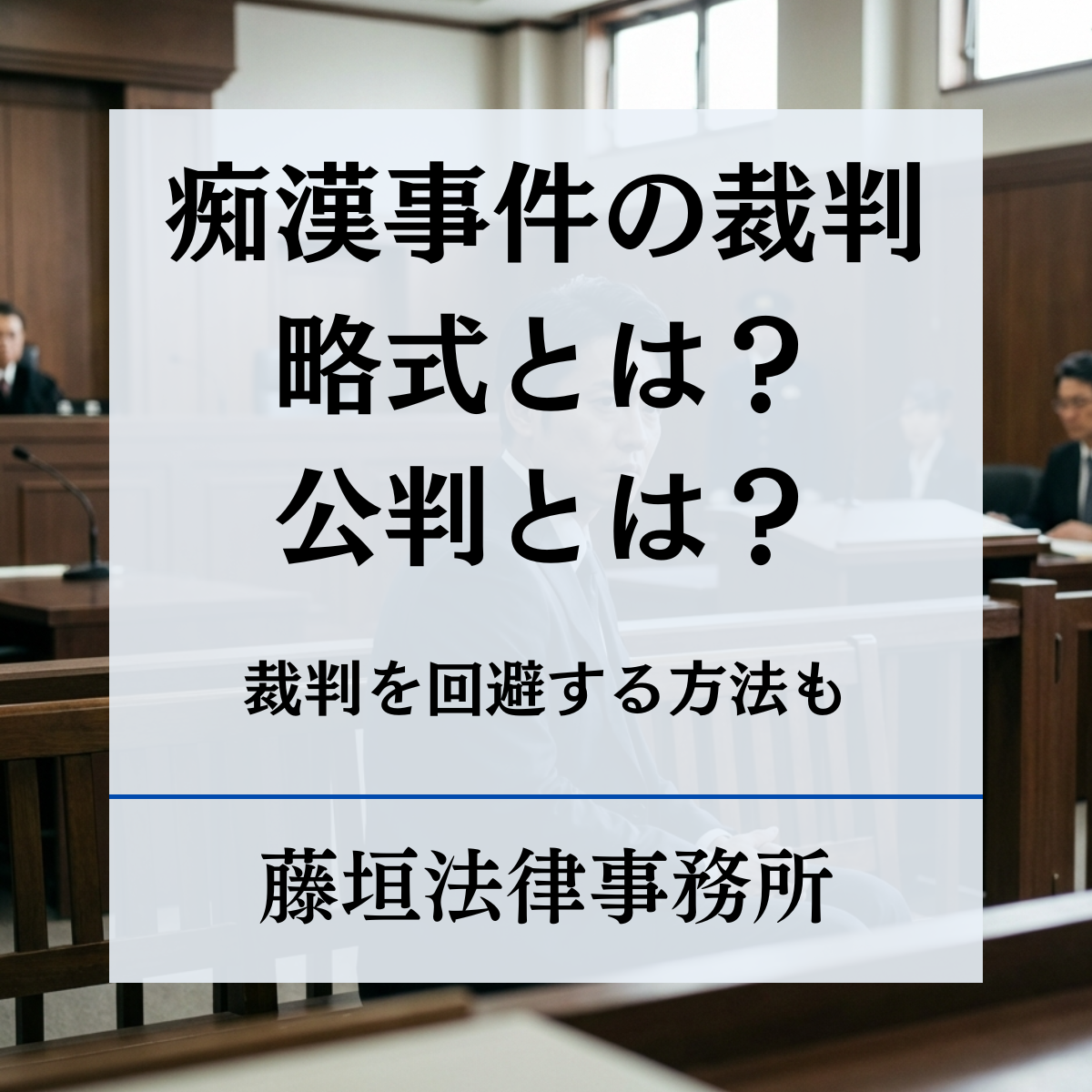 このように、同じ「痴漢事件」であっても、どの罪名が適用されるかによって、略式手続で終わるのか、公判で争われるのかが分かれます。裁判の流れや見通しを考えるうえでは、まず自分の事件がどの罪名に該当し得るのかを正しく把握することが重要です。