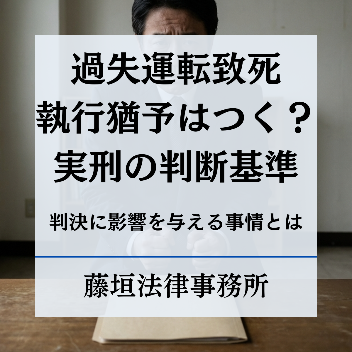 交通事故によって人を死亡させてしまった場合、「過失運転致死」として刑事責任を問われることがあります。このような事件で多くの方が最も不安に感じるのが、実刑になるのか、それとも執行猶予が付くのかという点ではないでしょうか。