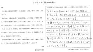 弊所に刑事事件分野のご依頼をいただいたお客様より頂戴したお客様の声をご紹介します。